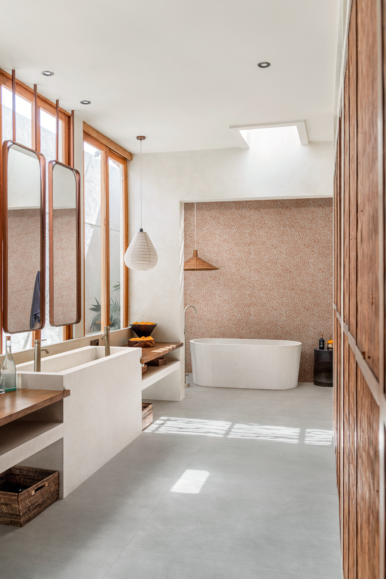 L’interprétation de la tradition de la terre cuite et des argiles s’étend même à la verticale. Autrefois, dans les pays méditerranéens, on utilisait les terres pour créer des cloisons, des jalousies et des murs opaques, tridimensionnels et sablonneux. L’écho de ces utilisations se retrouve dans les motifs contemporains du grès cérame, qui vise à mettre en valeur l’expressivité matérielle et la malléabilité des argiles. C’est le cas de Slow Wall de Marazzi, qui offre deux solutions structurelles et un décor en deux couleurs, chaudes et froides faisant partie des collections Slow et Slow Cold. Avec ce revêtement mural, on peut créer des boiseries et des murs aux surfaces irrégulières ou avec des motifs multidirectionnels horizontaux et verticaux. Les motifs traditionnels, comme le treillis des anciennes granges, trouvent ici une esthétique contemporaine et de nouvelles applications dans la conception d’intérieurs.