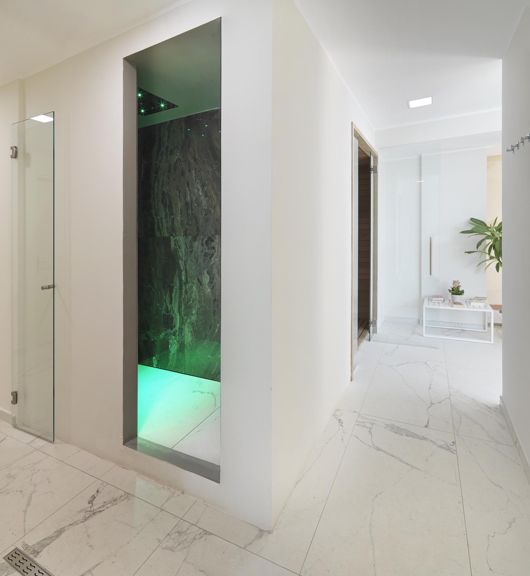 « Après la première visite des lieux, raconte Cammara, nous avons immédiatement remarqué que la zone bénéficiait d'un point de vue sur un panorama époustouflant et nous avons compris le potentiel extraordinaire du projet. Nous avons donc pensé de regrouper toutes les activités dédiées au bien-être dans les locaux du sous-sol. »