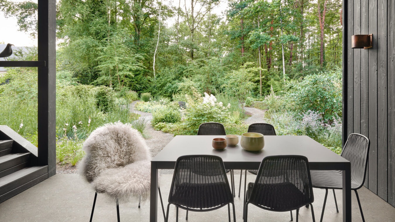 Si un jardin essentiellement vert, avec de l’herbe, du gravier ou de la terre, donne davantage une impression de naturel, il demande un entretien constant et limite le choix du mobilier. C’est pour cette raison que de nombreux projets optent pour une configuration mixte : une alternance équilibrée de mobilier et de plantes permet de différencier avec élégance les zones d’utilisation, comme un espace repas carrelé, que suit un coin détente végétalisé.