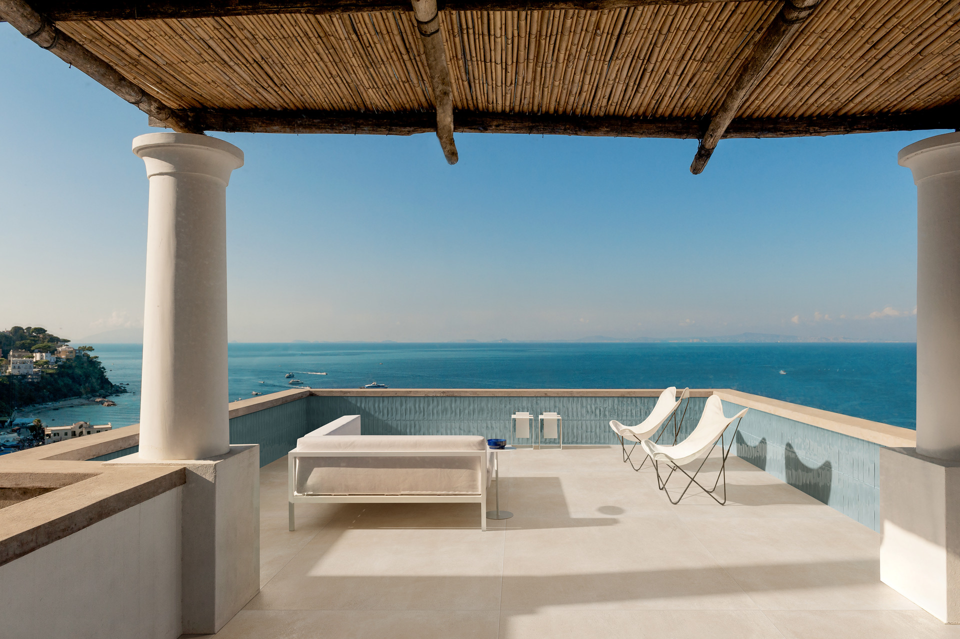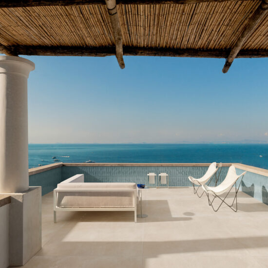 Les collections Marazzi idéales en l’occurrence vont de Mystone Limestone, dont l’imitation pierre évoque le naturel du paysage méditerranéen, à D_Segni Blend, parfaite si l’on recherche un accent décoratif unique. L’éclairage intégré entre le sol et le bord de la piscine complète le tableau, conférant à l’environnement une atmosphère raffinée même le soir. C’est ainsi que l’extérieur devient un lieu exclusif à vivre avec style, chaque jour.