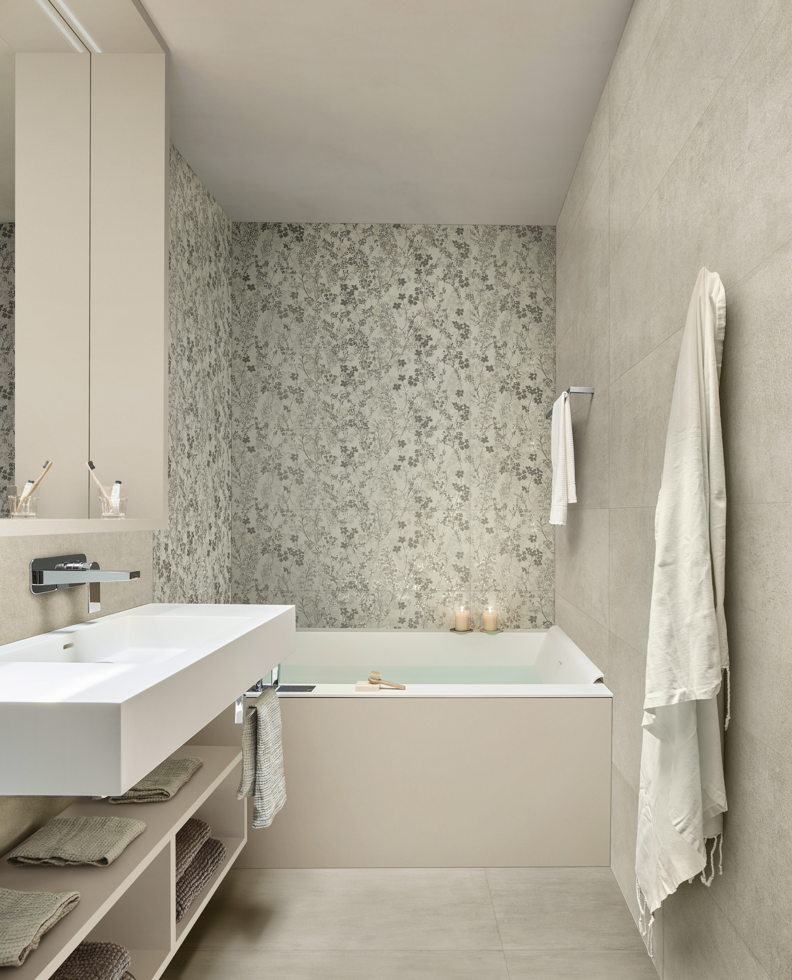 Un nettoyage régulier des joints est fondamental pour préserver leur aspect et empêcher la saleté de s’accumuler au point de devenir difficile à éliminer. L’entretien des sols en grès cérame est facilité par les caractéristiques techniques du matériau, qui est compact, non poreux et donc facile à nettoyer : ces propriétés permettent de se concentrer précisément sur les joints, la seule partie à être véritablement sujette à l’absorption de la saleté.