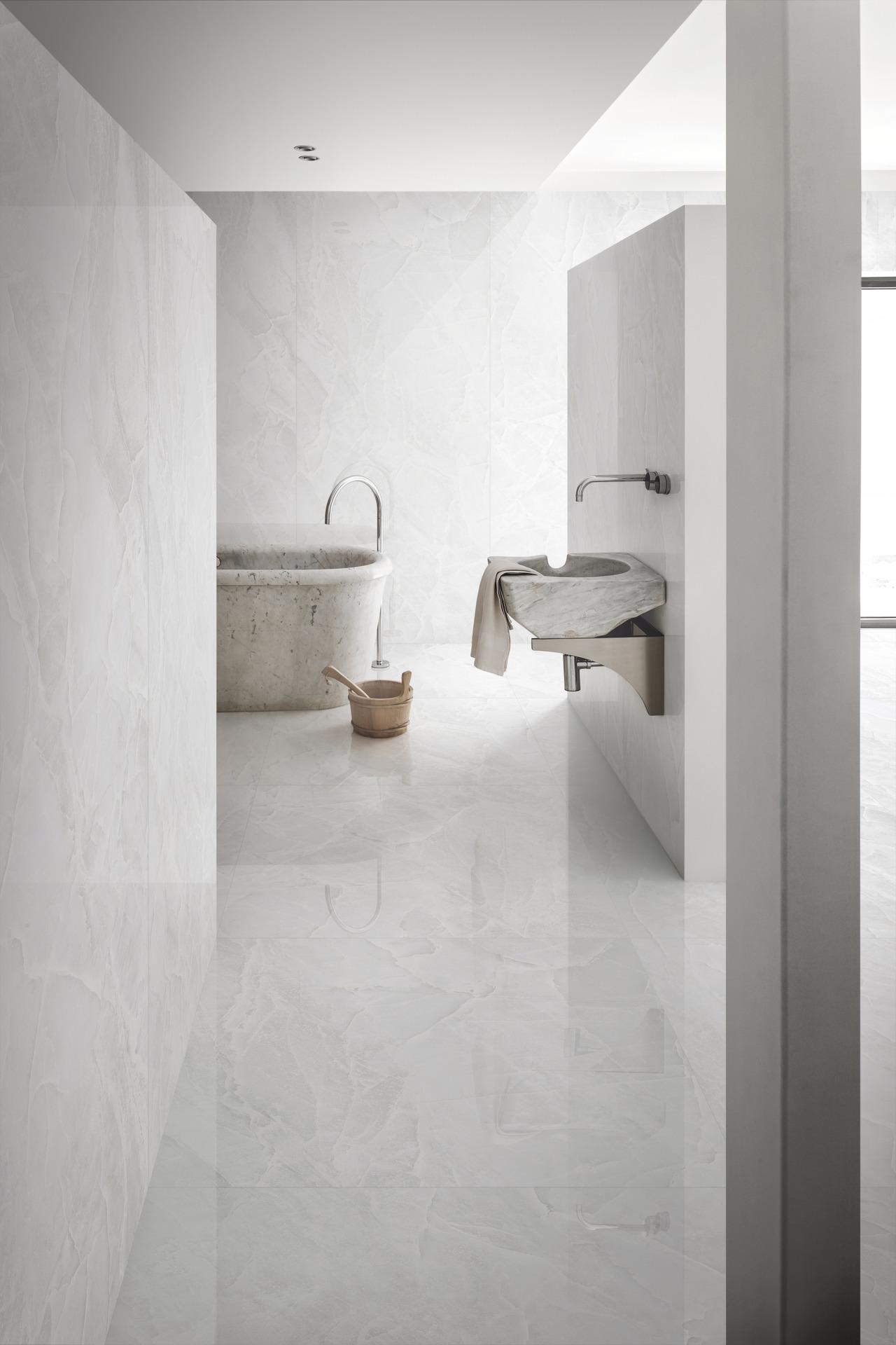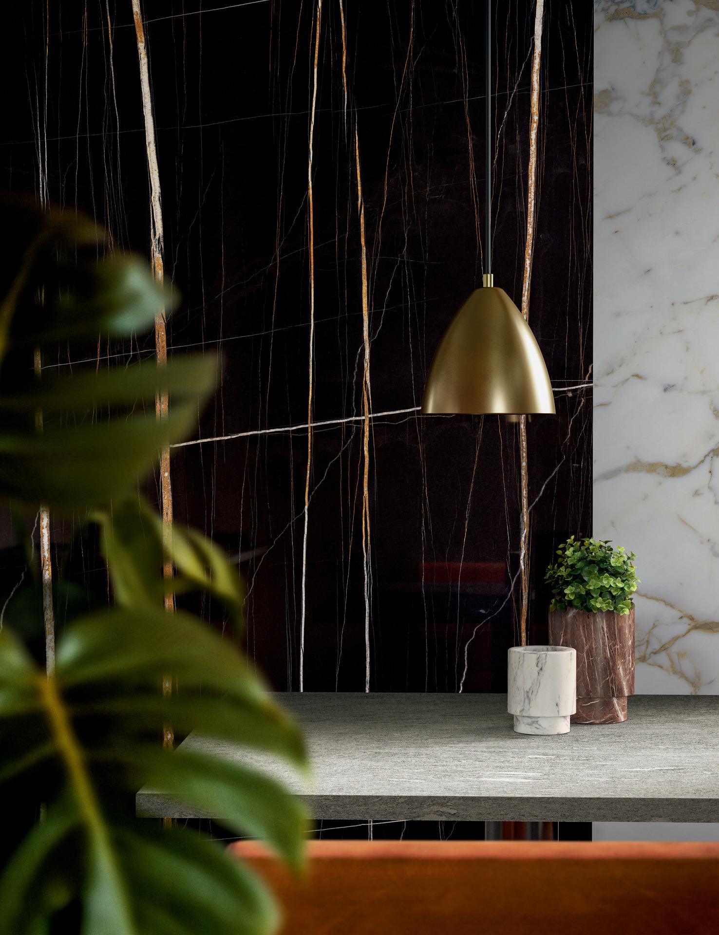 C'est de la beauté intemporelle des marbres que s'inspirent les dalles en grès haute technologie de dernière génération : plus nettes et plus durables que celles de l'original, les veines et les nuances des pierres les plus nobles et rares reprennent vie.