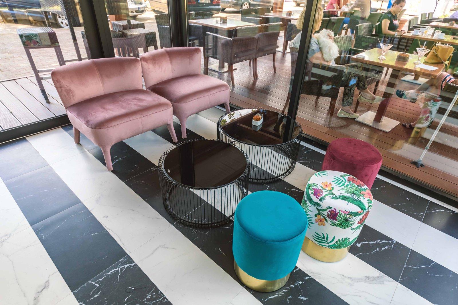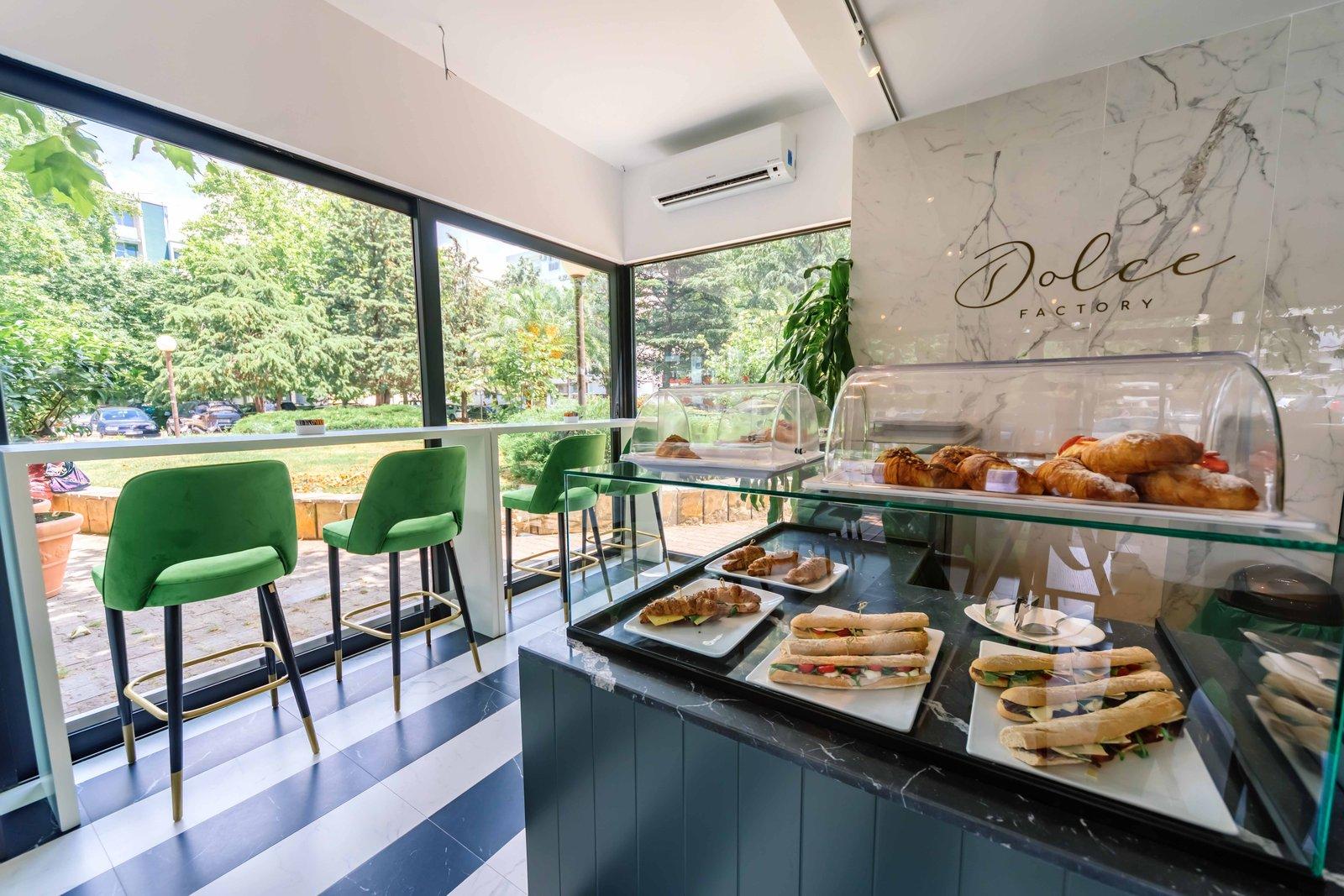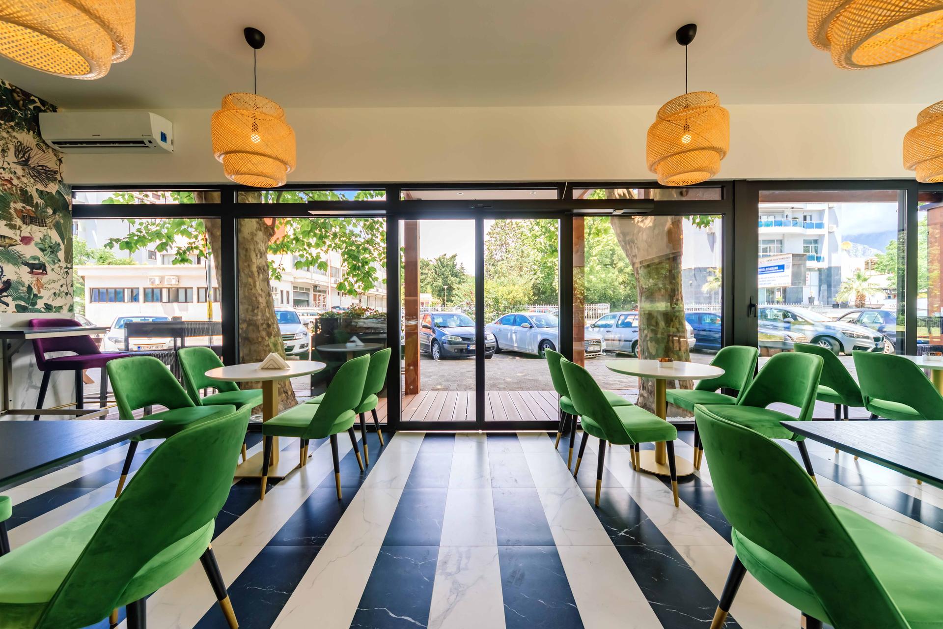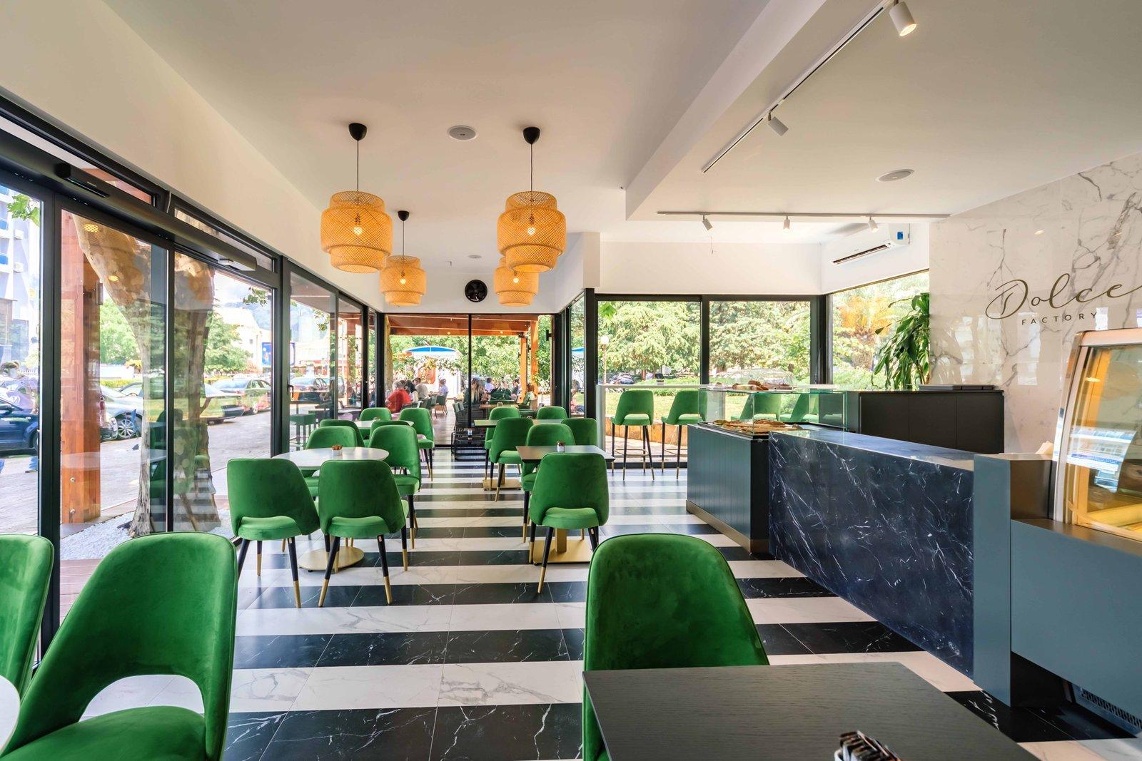 Dans ce projet qui concernait une pâtisserie récemment ouverte sur le caractéristique bord de mer à Bar, au Monténégro, il fallait créer une ambiance capable de charmer et d'allécher différents types de clients, locaux comme étrangers. Les couleurs sont fringantes et modernes, et les matières varient de la céramique à la pierre, des velours au papier peint. Un rôle principal a été attribué aux revêtements de mur et de sol qui, ensemble, rendent le local coloré et accueillant.