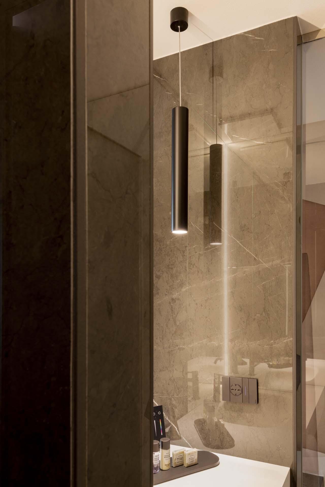 « Avec Marazzi, nous avons eu un coup de foudre », expliquent les designers. « Nous avons fait un large emploi de leur matériel pour donner un style italien et pour que le luxe des nouvelles chambres accueille les clients en les faisant rêver. »
