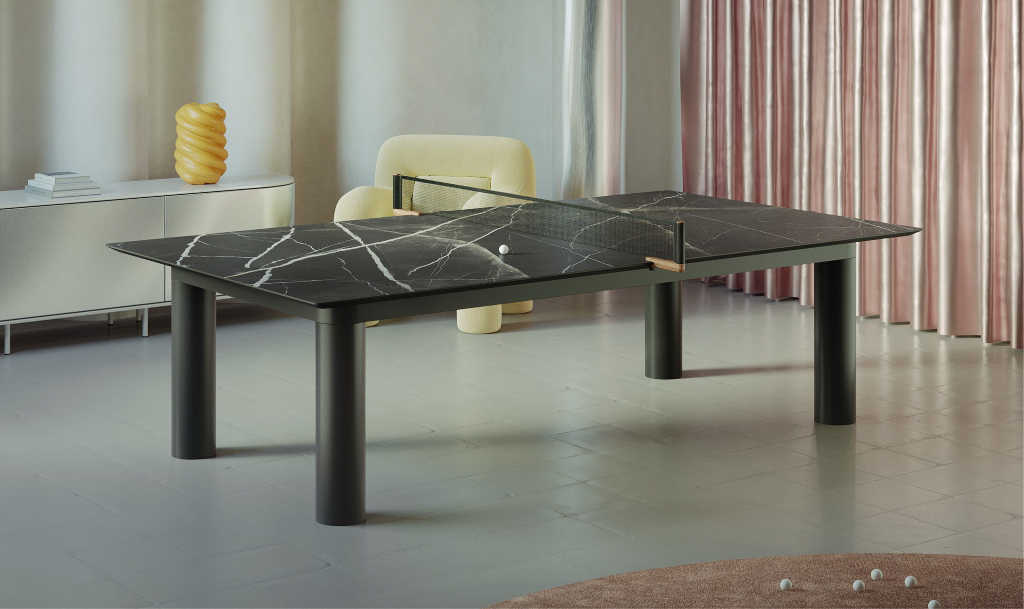 Une partie de ping-pong pendant la pause déjeuner pour briser la glace entre personnes qui ne se connaissent pas bien ? L’idée est séduisante. C’est celle de Il Magma, un studio multidisciplinaire de Reggio Emilia (Italie) fondé par Massimo Colonna et Chiara Ormelli, spécialisée dans le design de communication. Partant de la table de réunion de leur bureau, le duo de Il Magma a conçu un support, Partitina 0-1, ou petite partie, sur lequel travailler et jouer. La collection comprend cinq tables non professionnelles en trois variantes aux angles arrondis, une aux dimensions réglementaires du tennis de table et les autres un peu plus petites pour des salons de moins de 50 m². « Nous recherchions un compromis entre quelque chose de technique et d’élégant, pouvant remplir leur fonction de décoration autant que les autres meubles », précisent Massimo Colonna et Chiara Ormelli. Pour commercialiser la collection, ils ont créé la marque Lava.