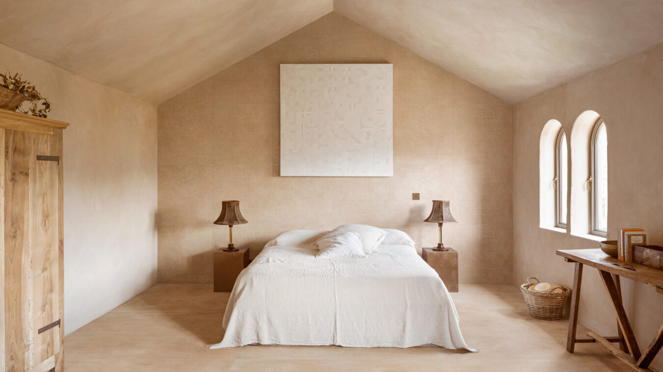 Slow interprète cette symbolique en alliant matérialité et performance : les surfaces sont techniques, extrêmement résistantes au gel et aux contraintes mécaniques. Du carré au rectangulaire (120×120 cm, 75×150 cm, 60×120 cm, 80×80 cm dans la variante 2 cm, 75×75 cm, 60×60 cm), six formats permettent de gérer les espaces et les poses multiples. Deux décors, Rafia et Tapis, rigoureusement ton sur ton, offrent une décoration en creux sur le matériau céramique avec des motifs graphiques aux riches contrastes raffinés, pour des effets de tapis à associer aux surfaces lisses ou à la texture en Mosaïque. Plus structuré, le décor Tapis est traité avec la technologie Premium Touch, qui enrichit la surface de granulats vitreux brillants ou mats.