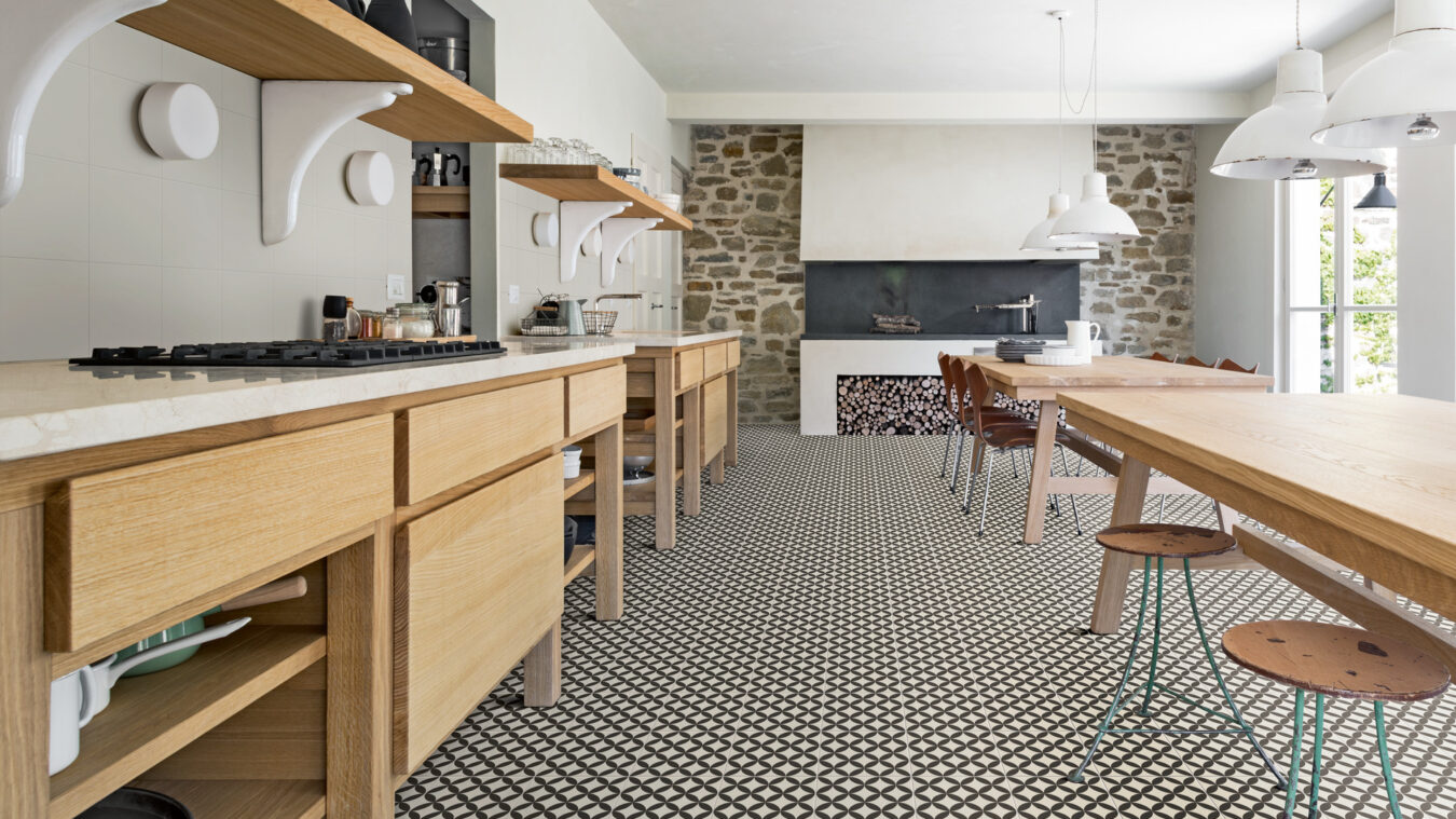 La collection Cementum décline l’imitation ciment dans une large gamme de nuances, y compris des hexagones et des motifs originaux, pour personnaliser avec style les murs et les sols des cuisines.