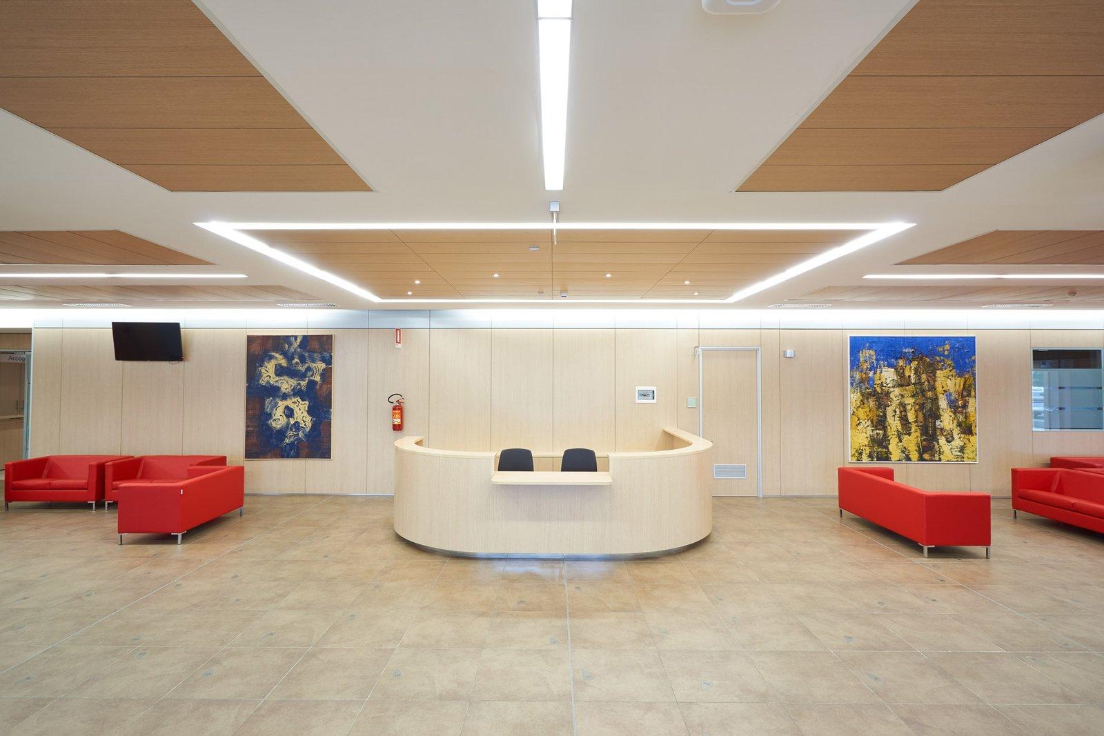 Le nouveau projet pour les zones communes de l'IRCCS Galeazzi comprend une utilisation inédite de la lumière naturelle, un espace vitré et ouvert sur l'extérieur avec une ambiance plus chaleureuse et plus accueillante, très différente de l'image que nous avons ordinairement des salles d'attente dans les hôpitaux.