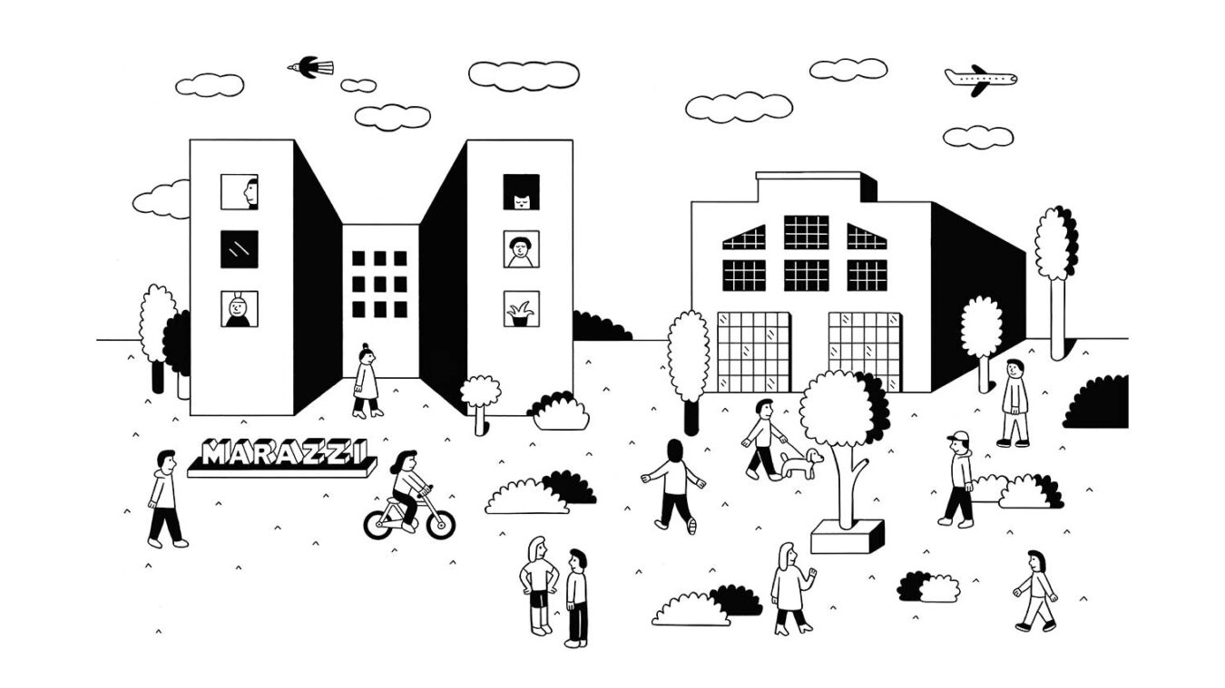 Marazzi rénove ses usines et agrandit son siège, y compris le bâtiment d’origine, et poursuit son internationalisation grâce à de nouveaux showrooms et des collaborations prestigieuses.
