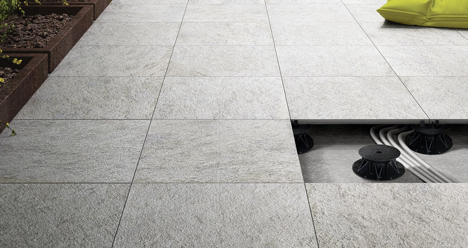 Les supports présentent une fonction de soutien et possèdent une résistance mécanique élevée. Les supports sont principalement réalisés dans des matériaux recyclables et recyclés, ils résistent aux solutions acides et basiques, aux agents atmosphériques et à des températures comprises entre -30° et + 75°. Les supports pour l’extérieur sont conçus pour être réglables en hauteur (2,2 cm au minimum / 10 cm au maximum selon les recommandations de Marazzi) et prévoient des accessoires permettant la correction d’inclinaison jusqu’à un maximum de 5 %.