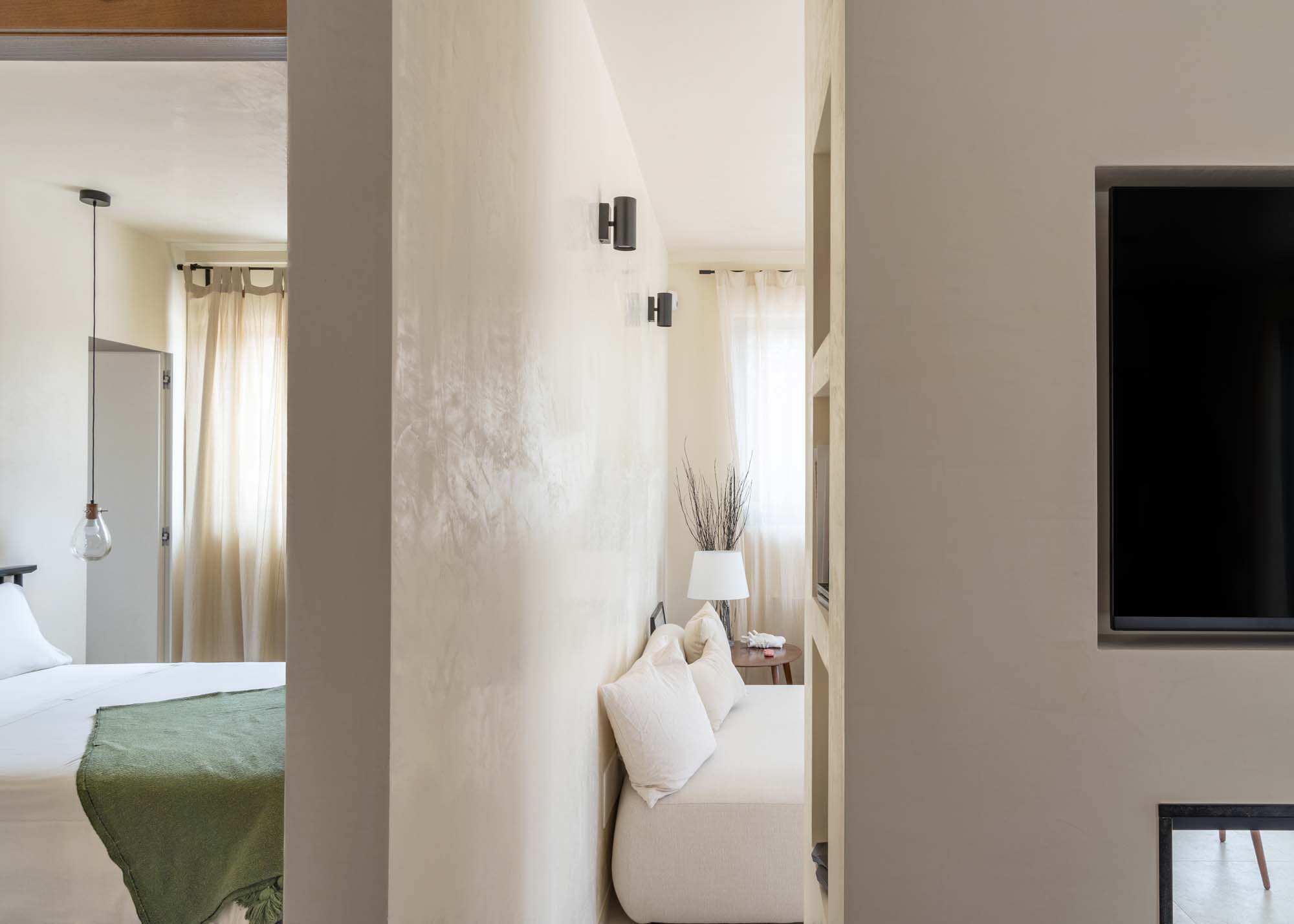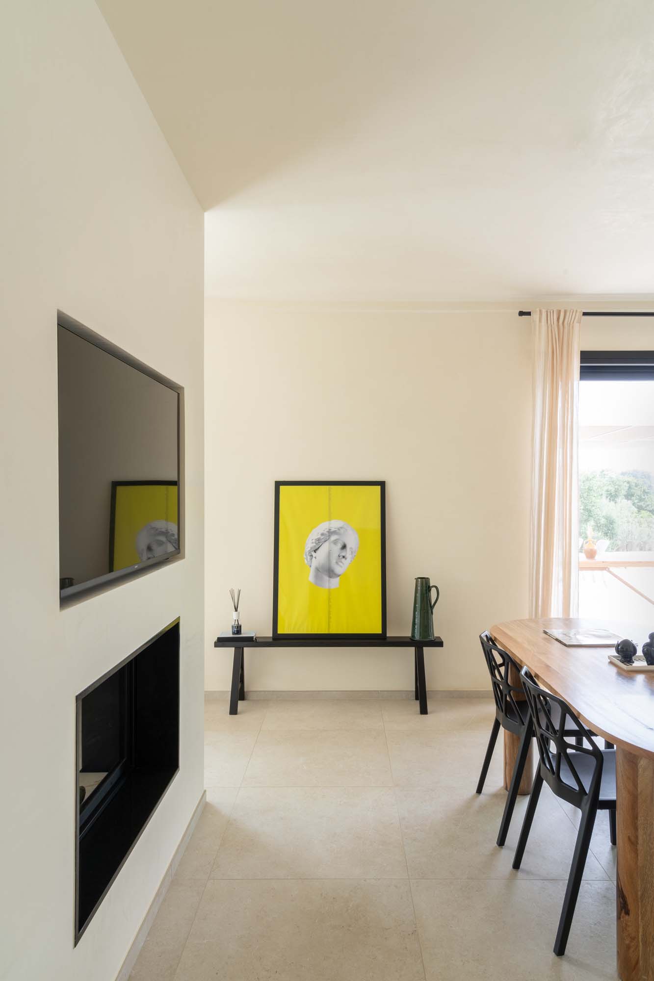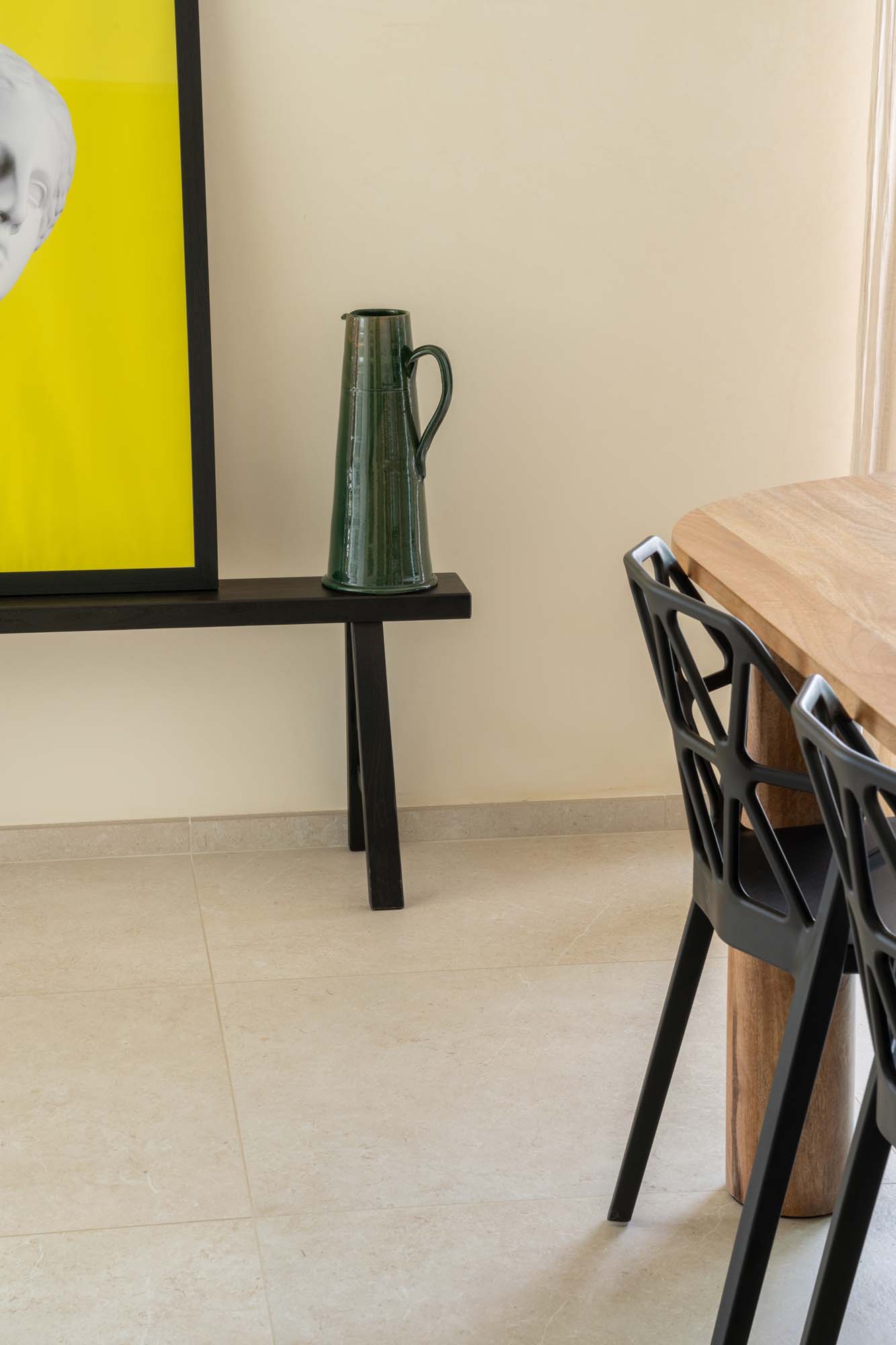 Le choix des matériaux a été déterminant dans la réussite du projet. Pour les sols de toute la maison, Mara Prezioso a opté pour les céramiques Marazzi, en l'occurrence la lumineuse couleur Ivory du grès cérame imitation pierre Mystone Limestone. Ce produit a été sélectionné pour sa capacité à souligner le contraste entre l'aspect rustique des trulli et la modernité des intérieurs. Avec ses tons chauds et naturels, la collection Mystone Limestone se marie parfaitement aux murs en pierre et aux éléments en bois, créant ainsi une ambiance chaleureuse et raffinée.