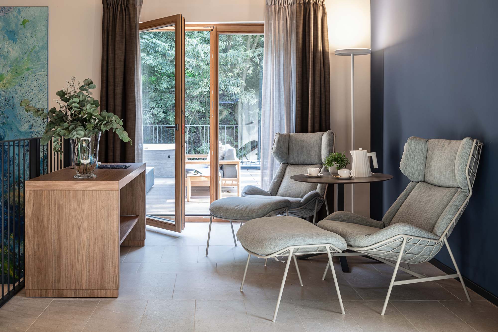 Les pavillons Green Lodge de Montegrotto Terme ont été conçus dans le souci d'une intégration respectueuse de la nature du territoire des Thermes Euganéens. Avec une attention particulière à la durabilité et au bien-être.