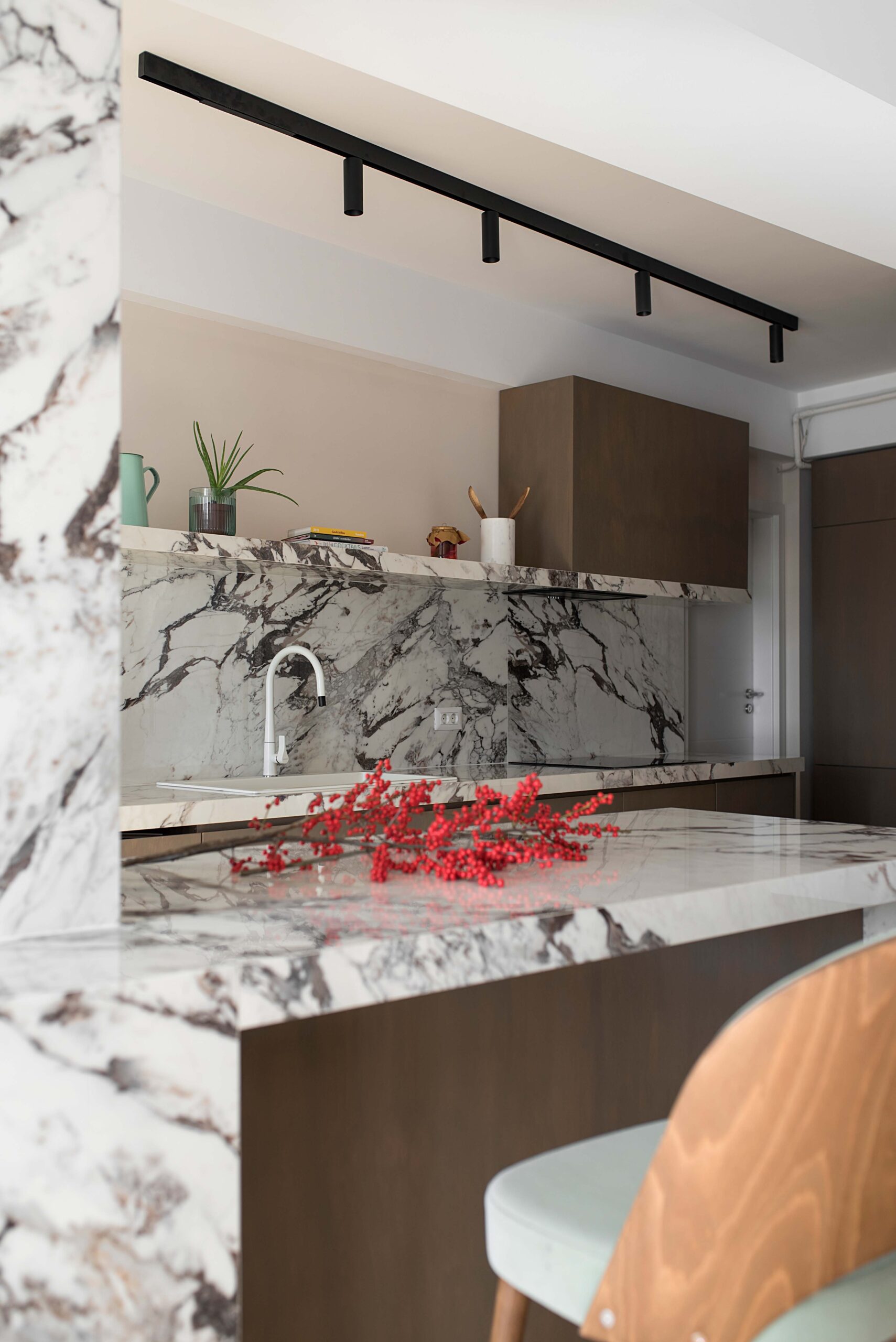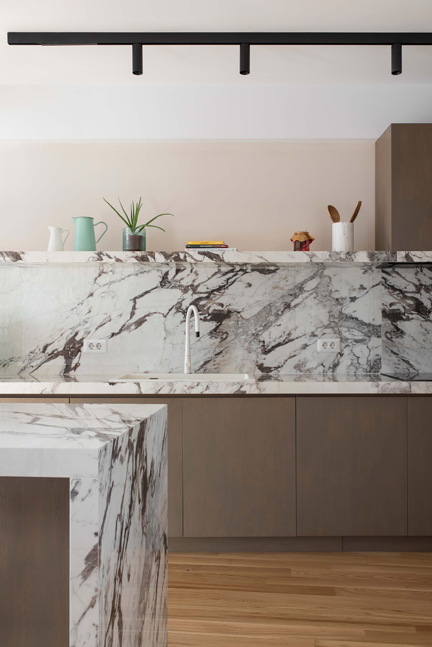Avec ses majestueux bâtiments du dix-neuvième siècle qui se mélangent aux gratte-ciels modernes et imposants, Bucarest est aujourd'hui une ville très effervescente qui se démarque par une vive scène culturelle et par d'animés quartiers commerciaux. Dans ce contexte urbain capable de faire cohabiter histoire et contemporanéité, l'architecte Cristina Stroe du Laboratorul de Arhitectura a conçu un open-space caractérisé par des lignes sobres, par des palettes neutres et par des matériaux de luxe, expressions des meilleures technologies appliquées à la décoration d'intérieur. Le projet s'articule autour des grandes dalles effet marbre de la collection The Top Marble Look : des surfaces de grande taille déclinant les tonalités des marbres les plus nobles et les plus rares du monde, parfaites pour les plans de toilette, les crédences, les tables et n'importe quel meuble personnalisé.