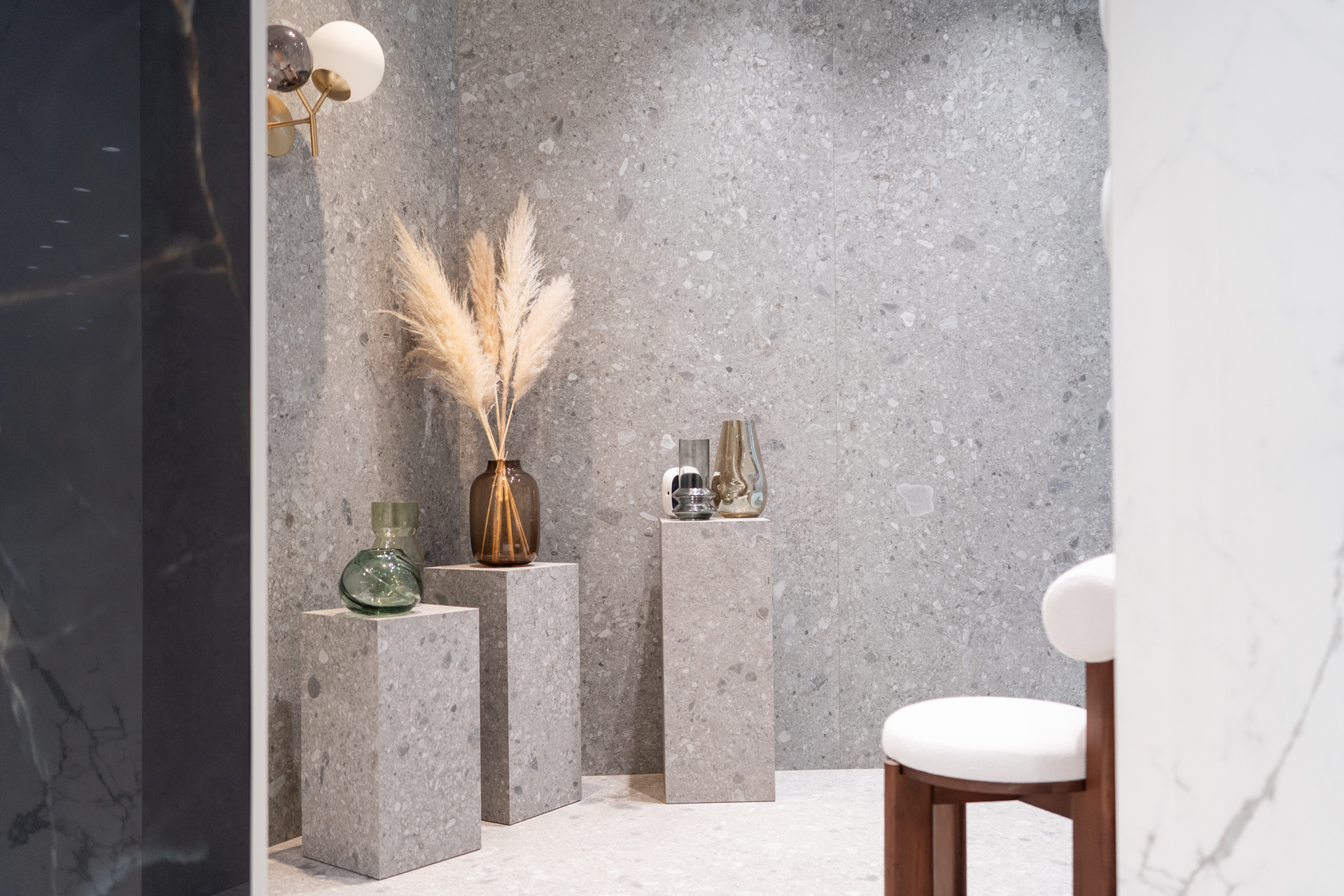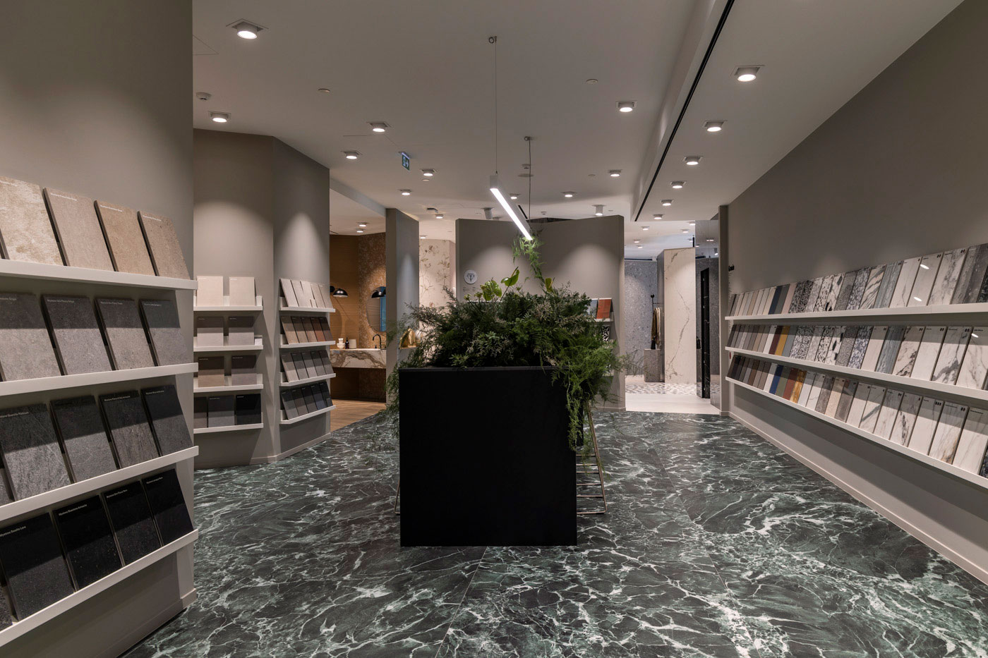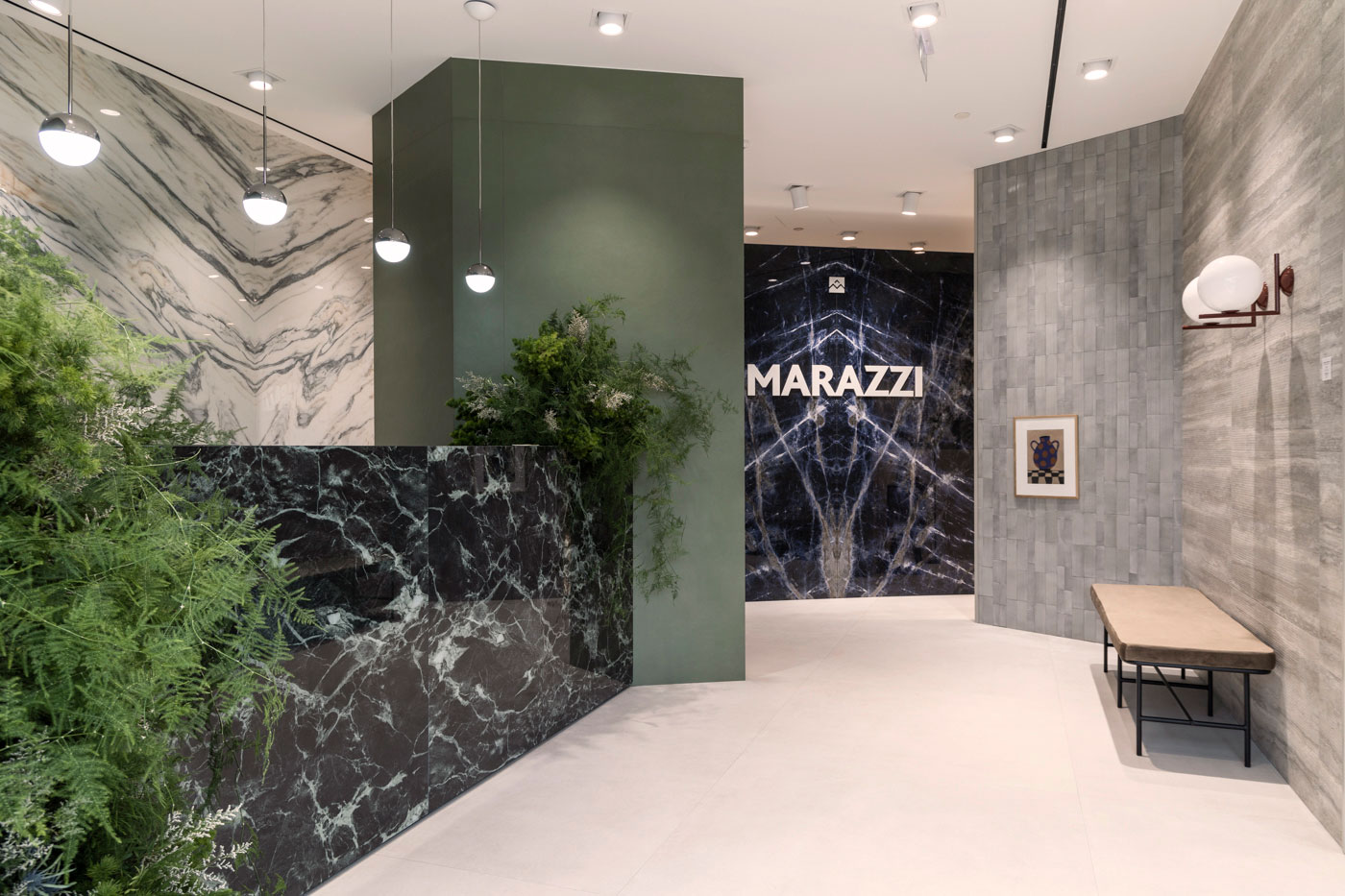 Se déployant sur près de 400 mètres carrés au rez-de-chaussé de l'immeuble « The Orbit », signé par Vikelas Architects et LC Architects, l'espace conçu par Gianluca Rossi - Uainot Architetti - est inspiré du labyrinthe de la mythologie grecque. Il s'agit d'une séquence de diverses scénographies, où un mélange de différents matériaux montre les possibilités illimitées des carreaux de céramique et de grès cérame pour tout type de projet. Le labyrinthe se termine sur la matériauthèque, un catalogue physique de produits haut de gamme, où l'on peut toucher et associer surfaces, textures et couleurs.